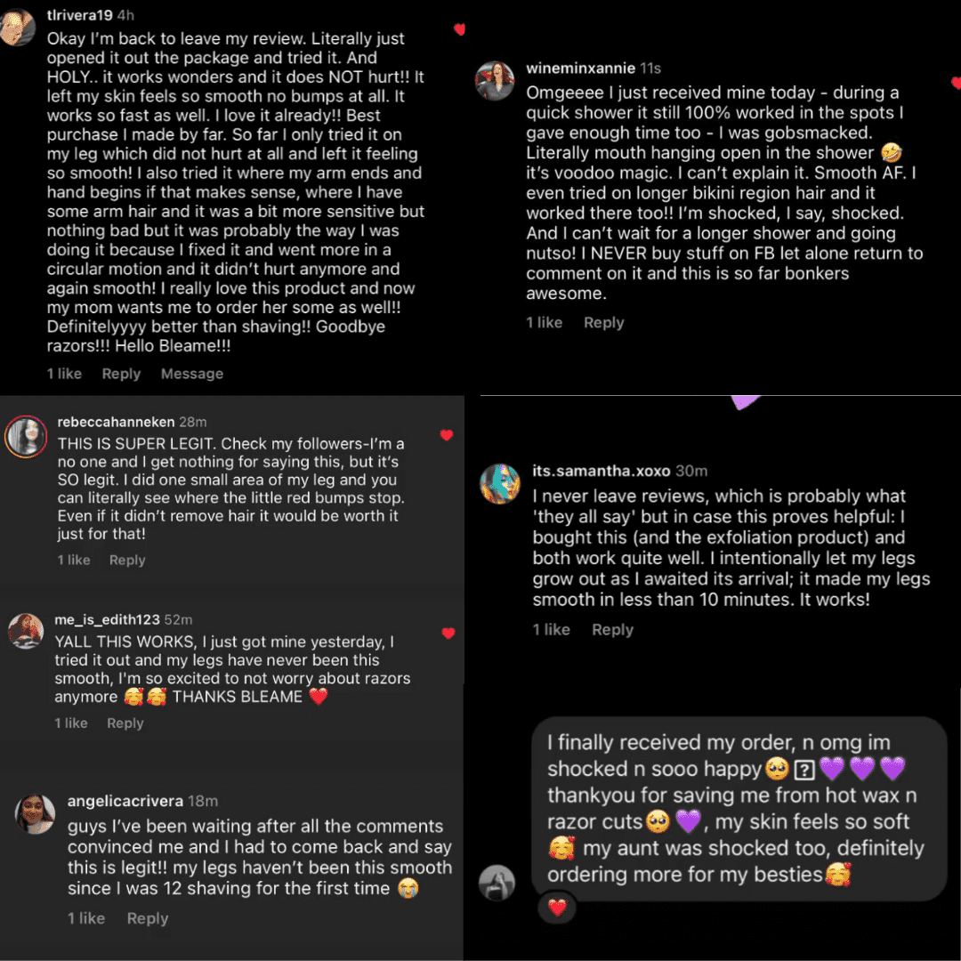 We love our Bleame™ Crystal Hair Eraser and are confident you will too! That’s why we’re offering a 30-Day Guarantee. If you’re not satisfied, we’ll be happy to review your case and see how we can help! 💜